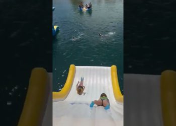 Have you ever been to an inflatable water park? So much fun! #waterpark #aquapark #waterslide #nz