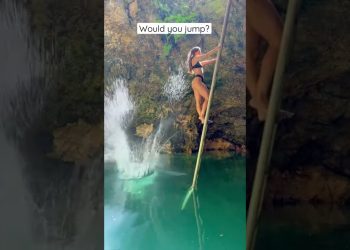 Blue Hole, Jamaica 🇯🇲.. would you jump? #adventure #fun #shortsvideo
