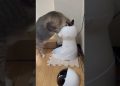 ご飯を補充しようとしたらつまみ食いする猫