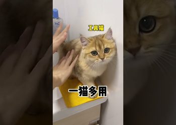 手ブラシに吸い寄せられる猫
