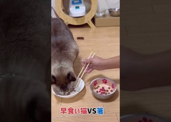 早食い猫VS箸