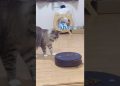 ロボット掃除機の上にご飯を置いたら猫はどんな反応するのか?